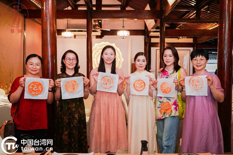 在甬臺胞臺屬體驗非遺朱砂拓印技藝。(中國臺灣網發)