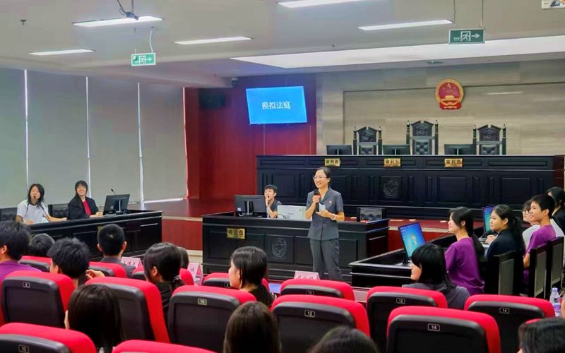 活動緊扣“零距離”體驗核心,精心設置了遞進式、沉浸式、互動式環節:一是實地探訪,感知司法莊嚴。學生們依次參觀了訴訟服務大廳、執行指揮中心、審判庭、圖書館及黨史長廊,直觀感受智慧法院建設成就與司法工作的嚴謹規范。二是庭審觀摩,領略法治實踐。通過旁聽典型案件審理,學生們切身感受了法庭的莊嚴氛圍與訴訟程序的公開透明,加深了對審判實務的理解。三是模擬法庭,沉浸角色體驗。改編真實案例,由學生身著法袍、律師袍等,親身體驗從法庭調查到辯論終結的完整流程,極大激發了參與熱情與學習興趣。四是互動研討,啟迪法治思維。在案情分析與判決推測環節,學生們積極思考;隨后的法律知識問答寓教于樂;法官的專業點評與深入交流、答疑解惑,升華了活動內涵。