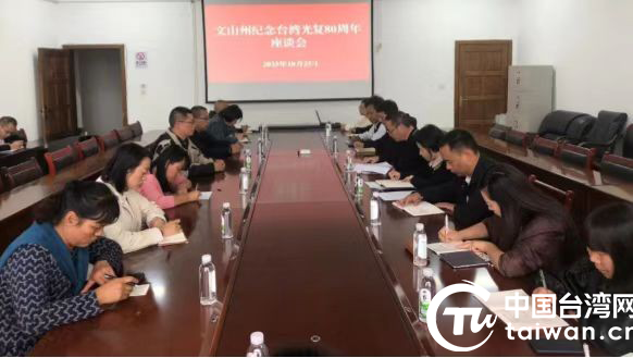 大家表示,臺灣光復是中國人民抗日戰爭勝利的重要成果,是中國政府恢復對臺灣行使主權的重要鐵證,是臺灣作為中國一部分的歷史事實和法理鏈條的重要一環,是兩岸同胞的共同榮光和全體中華兒女的民族記憶。要全面貫徹落實新時代黨解決臺灣問題的總體方略和對臺工作要求,用好文山資源優勢,持續深化與臺灣地區的交流合作,為臺胞臺企在文山發展提供更優質的服務和保障,以實際行動推動兩岸融合發展走深走實;要始終堅定立場,共同抵制“臺獨”分裂勢力,堅決維護國家主權、安全、發展利益,共同為實現中華民族偉大復興的中國夢而努力奮斗。