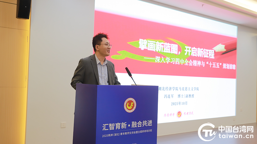 開幕式結束后,湖北省委講師團“百馬行動”宣講隊成員、該校馬克思主義學院副院長馮連軍以《擘畫新藍圖,開啟新征程——深入學習二十屆四中全會精神與“十五五”規劃前瞻》為題,結合中共二十屆四中全會精神,對鄂臺高校教師發展協同與創新進行詳細解讀。