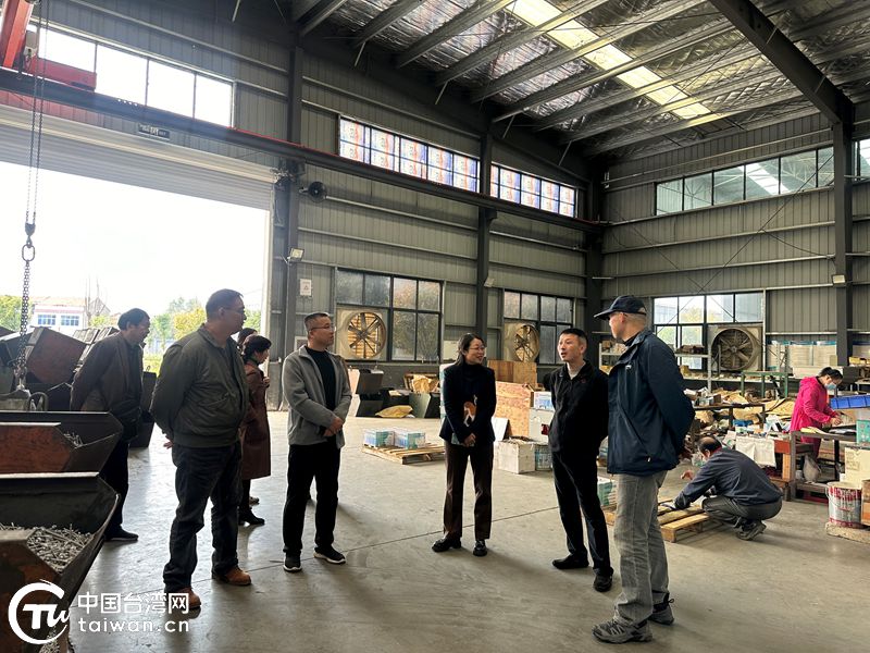 臺(tái)胞萬承遠(yuǎn)先生一行在鎮(zhèn)屬企業(yè)朗安金屬參訪。(中國臺(tái)灣網(wǎng)發(fā))