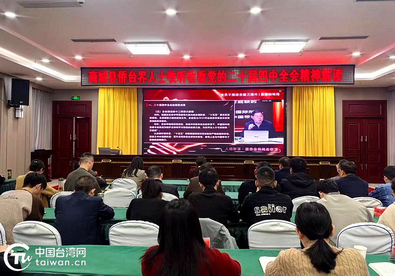 中國臺灣網11月4日訊 為進一步凝聚思想共識、匯聚奮進力量,深入學習貫徹黨的二十屆四中全會精神,10月30日,河南省信陽市商城縣臺辦組織臺僑界代表人士收聽收看《黨的二十屆四中全會精神解讀》專題講座。