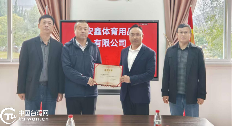 安慶市安鑫體育用品有限公司收到捐贈證書。(中國臺灣網發(fā))