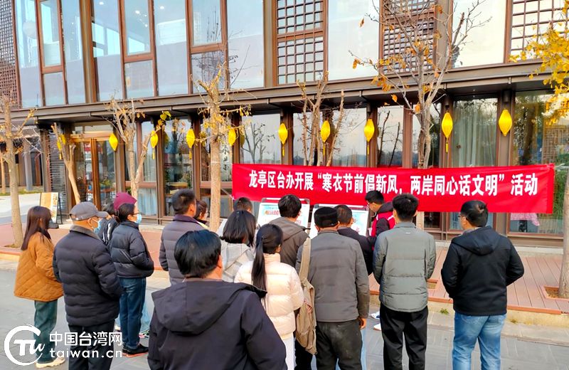 中國臺灣網11月20日訊 為弘揚時代新風、推進移風易俗,11月19日,開封市龍亭區臺辦在北書店街道960廣場開展“寒衣節前倡新風 兩岸同心話文明”主題宣傳活動,向轄區臺胞臺屬及社區居民傳遞移風易俗新理念,倡導樹立文明節儉、綠色科學文明祭掃新風尚。