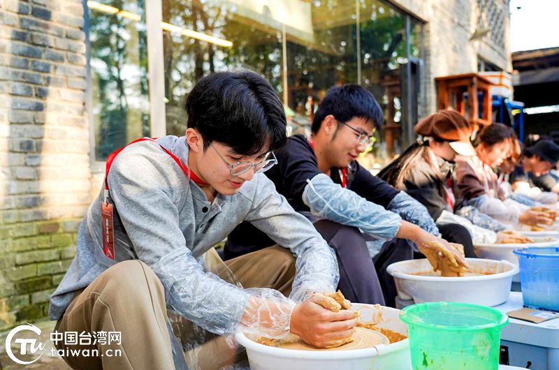 川渝臺生體驗陶藝拉胚。(中國臺灣網(wǎng)發(fā))