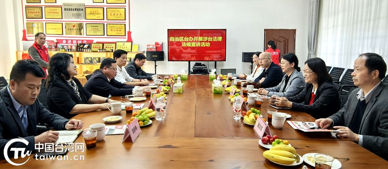 中國(guó)臺(tái)灣網(wǎng)12月1日訊 11月26日,廣西臺(tái)辦主任侯線紅一行到南寧市臺(tái)資企業(yè)調(diào)研,先后走訪廣西嘉泰水泥制品有限公司、廣西永江食品工業(yè)有限公司等,與臺(tái)企負(fù)責(zé)人、臺(tái)商代表、陸配代表進(jìn)行座談交流,宣介黨的二十屆四中全會(huì)精神,宣講涉臺(tái)法律法規(guī),為臺(tái)企在桂發(fā)展加油鼓勁。