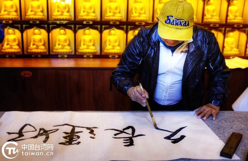 臺胞吳先生即興潑墨題字。(中國臺灣網發)