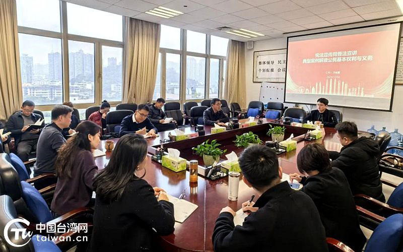中國臺灣網(wǎng)12月8日訊 為深入學(xué)習(xí)宣傳貫徹習(xí)近平法治思想,進(jìn)一步弘揚(yáng)憲法精神,在第十二個國家憲法日到來之際,貴州省委臺辦以“學(xué)習(xí)宣傳貫徹憲法,推進(jìn)全面依法治國”為主題,組織開展形式多樣的“憲法宣傳周”系列活動,通過舉行憲法宣誓儀式暨憲法知識專題講座等,營造機(jī)關(guān)尊法、學(xué)法、守法、用法的濃厚氛圍。