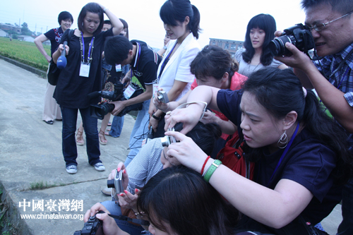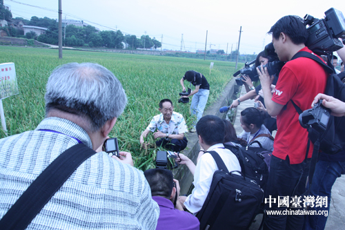 采訪第一站,湖南雜交水稻研究中心,當傳說中的袁隆平院士出現(xiàn)時,兩岸記者瞬間變身老先生的瘋狂粉絲,從研究所一路追到實驗田,“喋喋不休”的提出各式問題,從如何看待轉基因食品到是否吃過臺灣大米,兩岸媒體都想聽聽老先生怎么說。采訪結束后,八十歲的老院士還不能抽身,在實驗田邊經(jīng)歷了臺灣記者的熱情圍堵與瘋狂拍照。