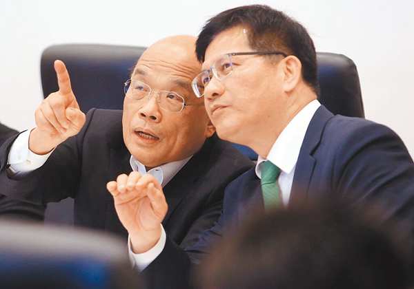蘇貞昌(左)上周以“行政中立”為由,婉拒出任林佳龍(右)競總榮譽主委,不到三天,卻在官邸廣邀民進黨新北市議員參選人開便當會,事后回應媒體時竟稱“對于自己政黨的候選人給予支持、加油,是天經地義的事”。(圖片來源:臺灣“中時新聞網”)