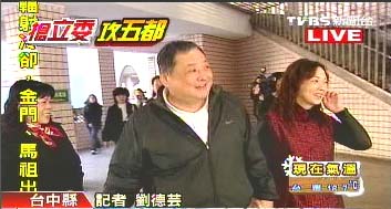 國民黨籍臺中縣“立委”提名人余文欽和太太赴投票所投票。 來源:臺灣TVBS電視臺