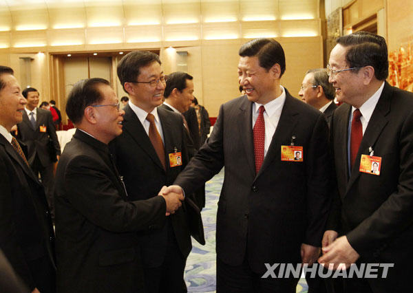 3月5日,中共中央政治局常委、國家副主席習近平來到他所在的十一屆全國人大三次會議上海代表團,同代表們一起審議政府工作報告。新華社記者劉建生攝
