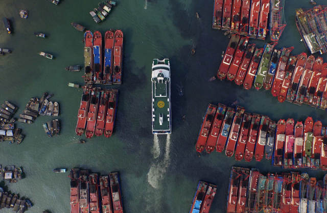 輪船駛出廣西北海國際客運(yùn)港(2016年5月18日攝)。新華社記者 張愛林 攝