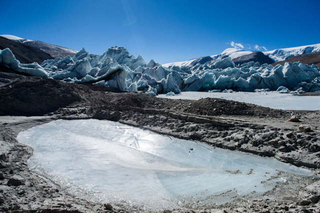 1月19日拍攝的崗布冰川一角。崗布冰川位于西藏浪卡子縣與康瑪縣交界處,距離拉薩250多公里。這里海拔5500米左右,冰川形態(tài)各異,置身其中如同進(jìn)入一處冰塔迷宮。新華社記者 普布扎西 攝