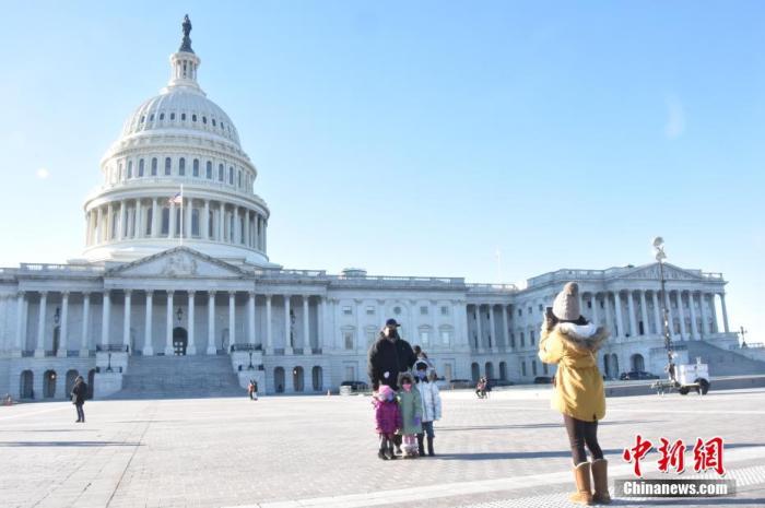 當地時間12月29日,美國首都華盛頓,民眾佩戴口罩拍照。