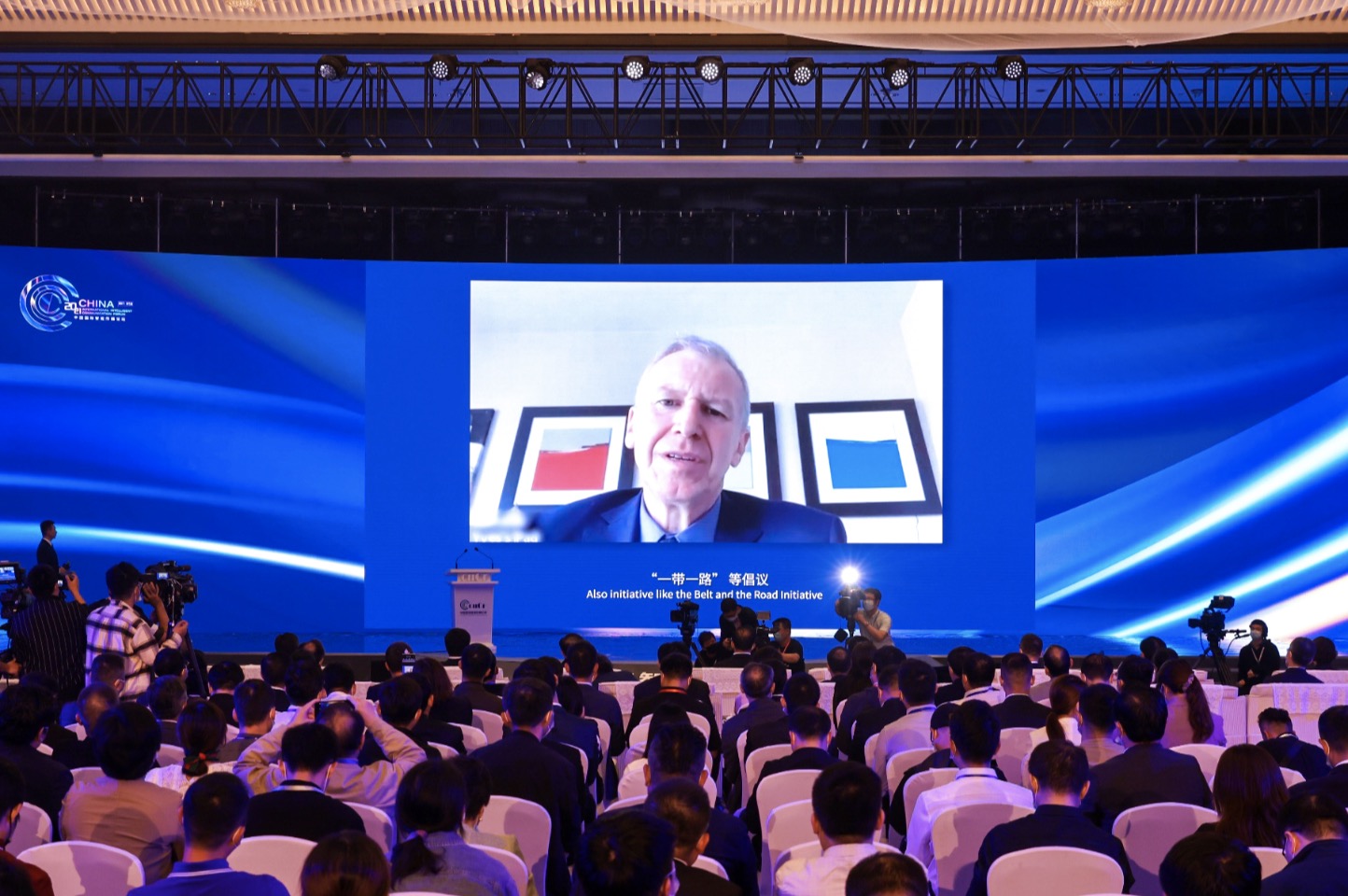 無錫市委書記黃欽,比利時前首相伊夫·萊特姆,聯合國系統駐華協調員常啟德,新華社黨組成員、秘書長宮喜祥,中國移動通信集團有限公司副總經理簡勤在開幕式致辭。