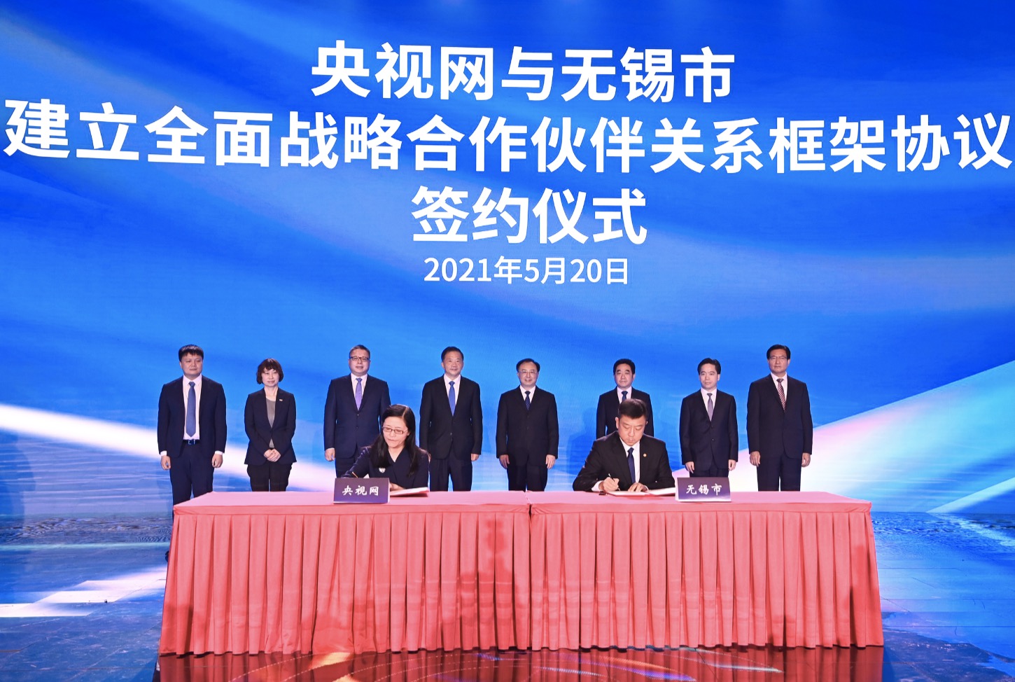 △央視網黨委書記、董事長錢蔚,無錫市委副書記、市長杜小剛代表雙方簽署戰略合作框架協議