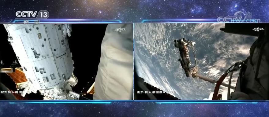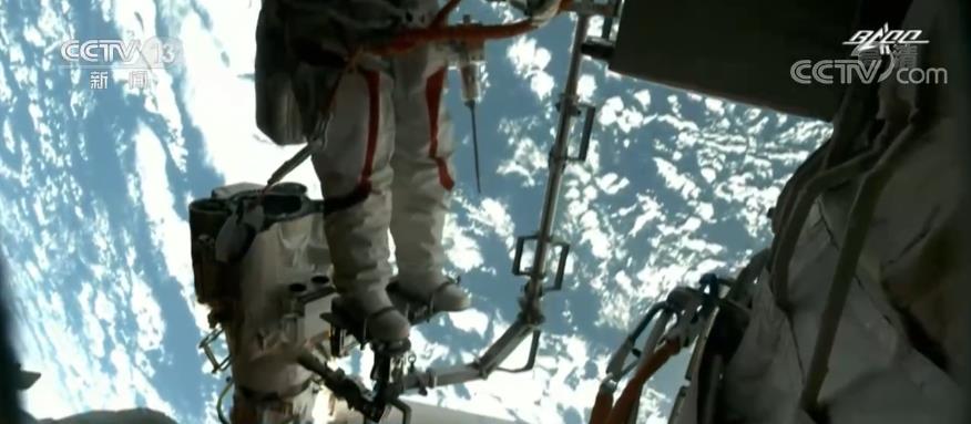 央視網消息:在今天(8月20日)的中國空間站航天員第二次出艙活動中,通過我們的獨家畫面,我們也見證了航天員在太空的互拍,當時劉伯明幾乎是掛在空間站上,聶海勝站在了他前方的機械臂上,背景是藍色的地球。到底有多酷炫,一起來欣賞一下。