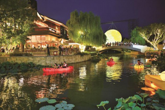 9月21日晚,嘉興市區(qū)南湖天地,一輪巨大的月亮裝置在夜色中散發(fā)著柔和而明亮的光芒,仿佛將中秋的浪漫氛圍提前拉滿。市民、游客們泛舟于湖面,任由“月光”與霓虹的光影在水面上交織閃爍,沉浸在這如夢如幻的場景中,感受著中秋佳節(jié)的臨近,心中滿是對團圓與美好的期盼。(徐志達)