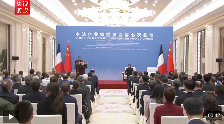 12月4日中午,國家主席習近平在北京同法國總統馬克龍共同出席中法企業家委員會第七次會議閉幕式并致辭。