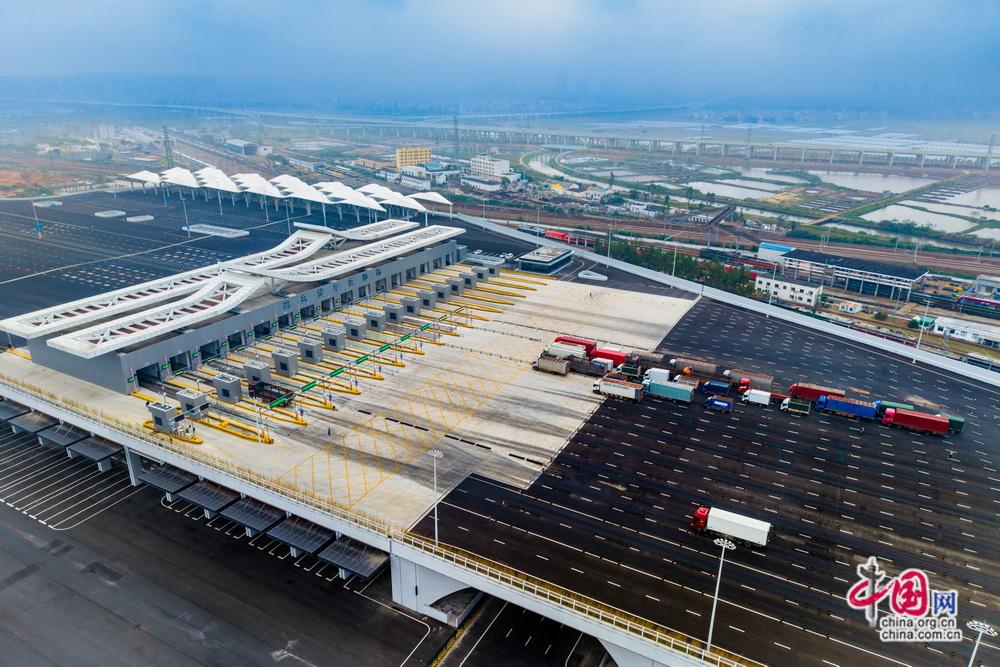 航拍海口新海港和南港“二線口岸”(貨運(yùn))集中查驗(yàn)場(chǎng)。中國網(wǎng)記者 鄭亮攝