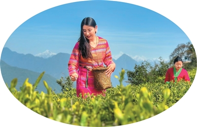 采茶的門巴族姑娘。