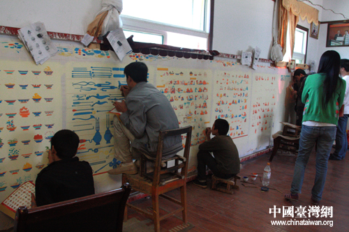工人們在繪制唐卡作品。(中國臺灣網 楊云濤攝)