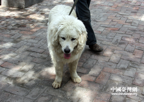 臺灣記者與藏獒零距離接觸。(中國臺灣網 楊云濤攝)