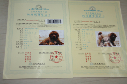 藏獒血統鑒定書。(中國臺灣網 楊云濤攝)