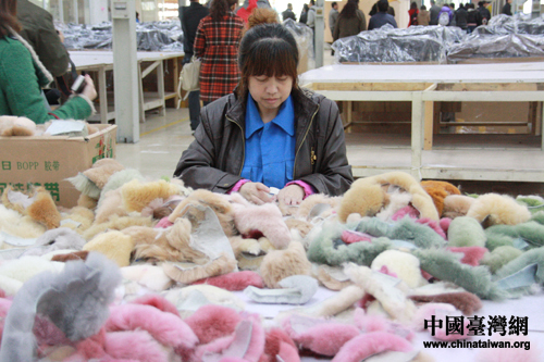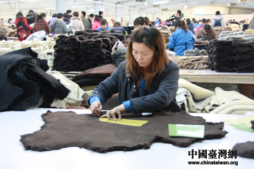 維信的女工在分揀毛皮材料。(中國臺(tái)灣網(wǎng) 王怡然 攝)