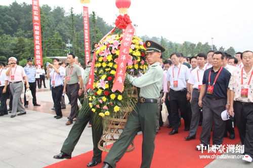 考察團全體成員向毛主席銅像敬獻花籃。(中國臺灣網 王君飛 攝)