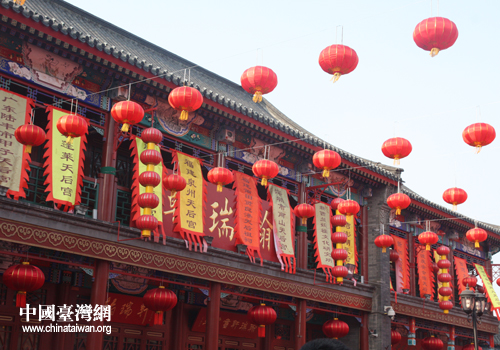 天津古文化街張燈結彩。(中國臺灣網 郭慶娜 攝)