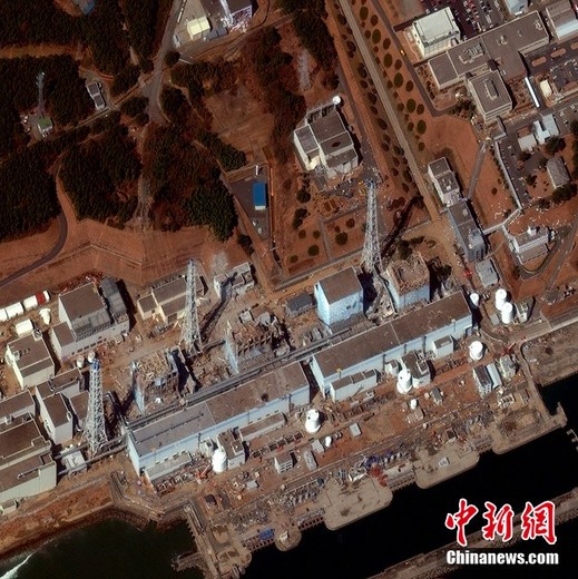 3月18日拍攝的衛(wèi)星照片顯示的是,日本福島第一核電站1號機組到4號機組(從右到左)。