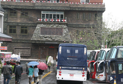臺(tái)灣開放大陸游客后,景點(diǎn)業(yè)者說(shuō),大部分未與旅行社綁約的店家受惠有限。圖為日月潭地區(qū)專門做陸客團(tuán)生意的大型藝品店,停車場(chǎng)常停滿游覽車。圖片來(lái)自臺(tái)灣媒體
