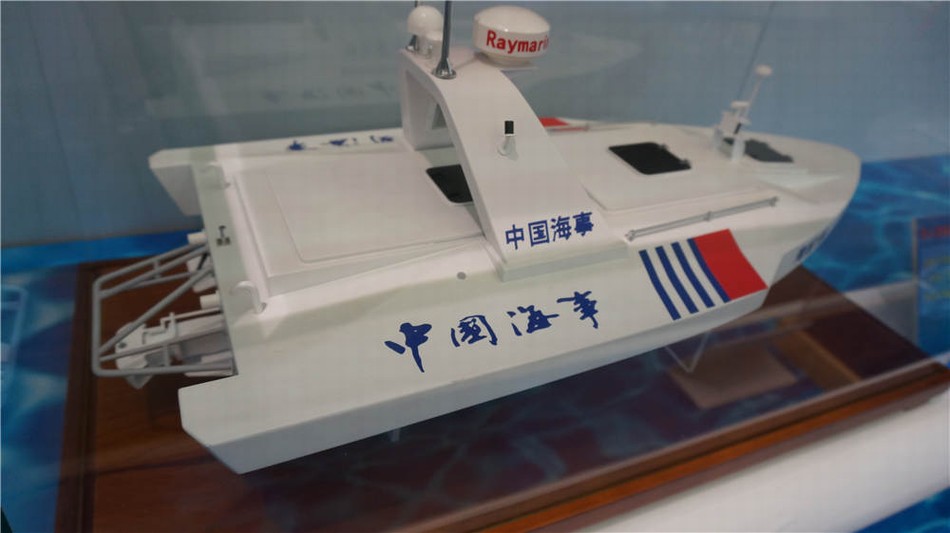會展上出現(xiàn)的無人巡邏小艇模型(飛揚軍事 同舟滅日 供圖)