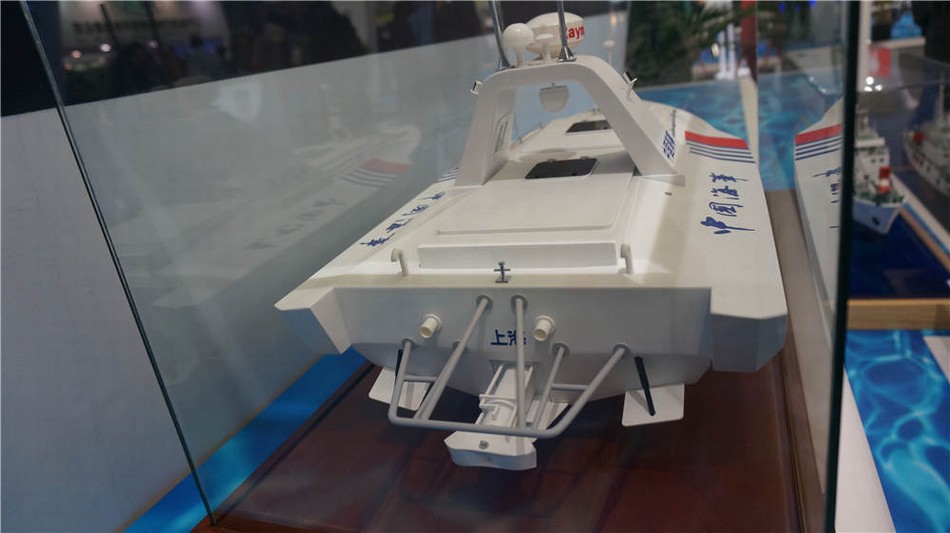會展上出現(xiàn)的無人巡邏小艇模型(飛揚軍事 同舟滅日 供圖)
