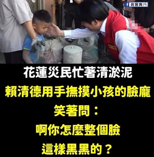 23日下午災情發生后,賴清德當晚還依原定計劃出席某歡迎晚宴。勘災時,賴竟笑問受災戶兒童“你臉上怎么黑黑的?”,引發一片輿論嘩然。不止于此,雖然這次沒再說出“不能什么事都靠臺軍”的狂言,賴卻主動找救災士兵擊掌“Give me five”,因該動作常用于慶祝勝利,讓不少人看傻眼。