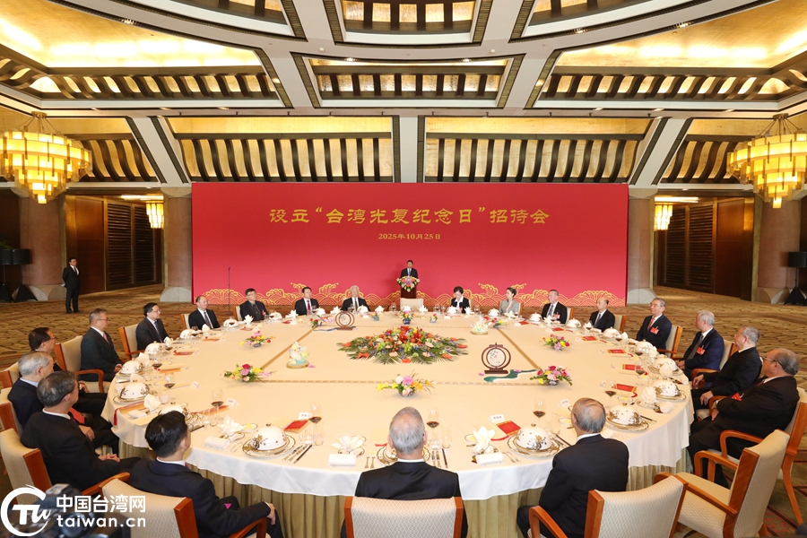 中國(guó)臺(tái)灣網(wǎng)北京10月25日訊 25日中午,中共中央臺(tái)辦、國(guó)務(wù)院臺(tái)辦在釣魚臺(tái)國(guó)賓館舉辦設(shè)立臺(tái)灣光復(fù)紀(jì)念日招待會(huì),參加25日上午紀(jì)念臺(tái)灣光復(fù)80周年大會(huì)的臺(tái)灣各界嘉賓、大陸有關(guān)方面代表人士出席。