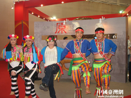 臺灣少數民族一向能歌善舞,這不,他們正用舞蹈熱情地向參觀者“吆喝著”自己的文化。看阿里山的姑娘阿里山的少年跳起了熱情奔放的舞蹈,讓人忍不住不去感慨:原來文化可以如此熱情地展示啊!