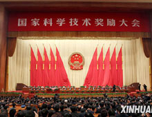 中共中央、國務院11日上午在北京隆重舉行國家科學技術獎勵大會。黨和國家領導人胡錦濤、溫家寶、李長春、習近平、李克強出席大會并為獲獎代表頒獎。溫家寶代表黨中央、國務院在大會上講話。李克強主持大會。